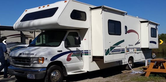 Gulf Stream Yellowstone is approximately 30 feet in length with a Chevrolet Vortec engine, Workhorse chassis, power mirrors with heat, power windows and locks, 3.6 KW generator, power patio awning, slide-out room topper, pass-thru storage, tank heater, 5K lb. hitch, back up camera, cab over bunk, ducted roof A/C and an LCD TV with CD/DVD player and surround sound system.
